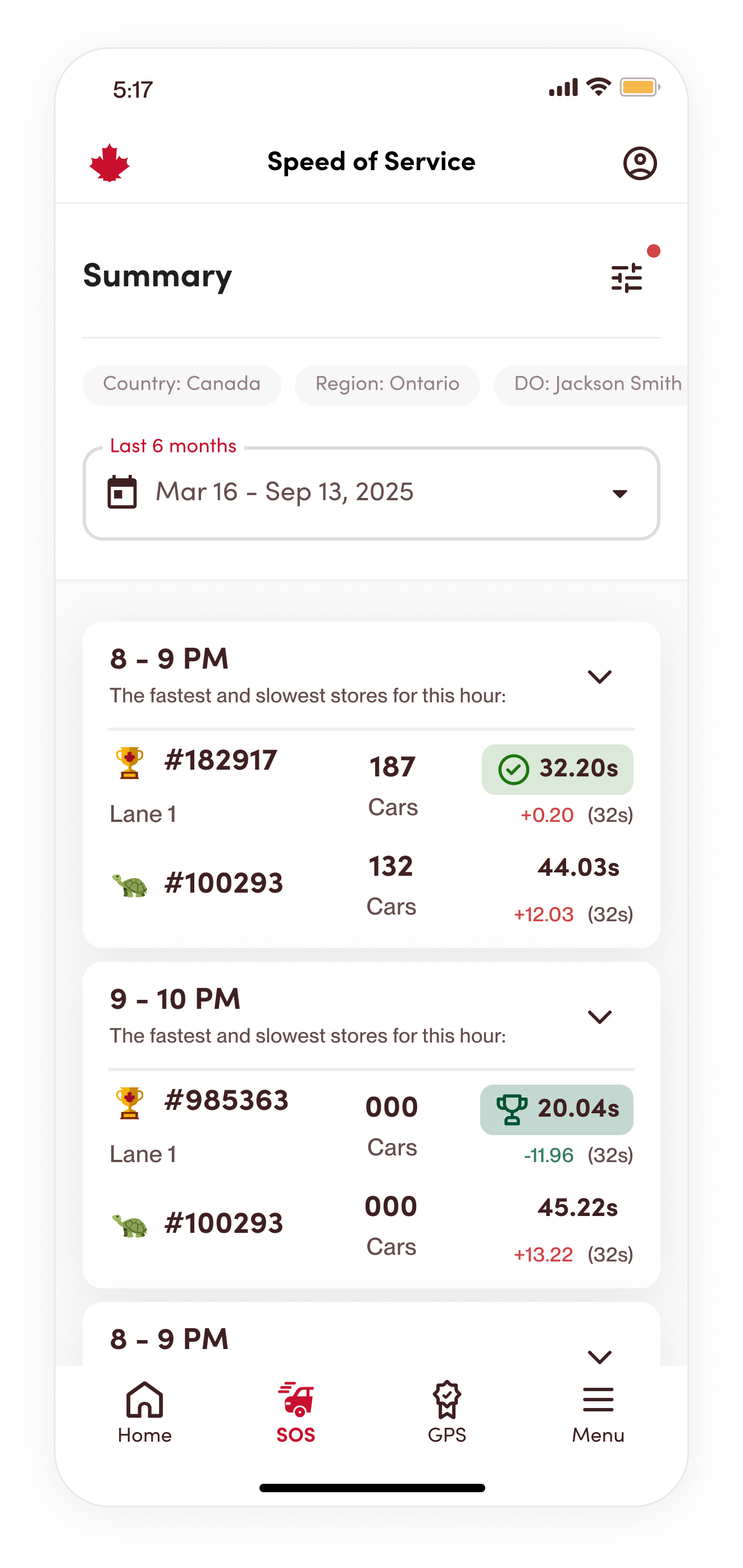 Improved drive-thru times by +0.8s YoY versus non-users by embedding speed-of-service insights and targets into restaurant management tools.