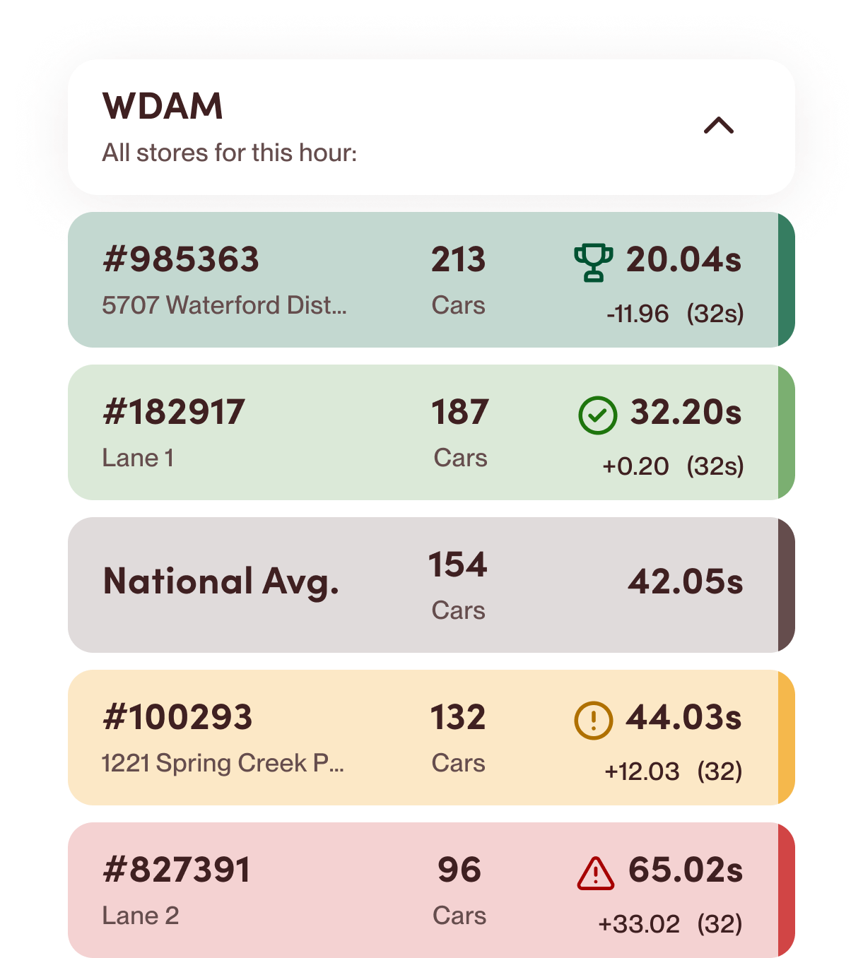 Improved drive-thru times by +0.8s YoY versus non-users by embedding speed-of-service insights and targets into restaurant management tools.