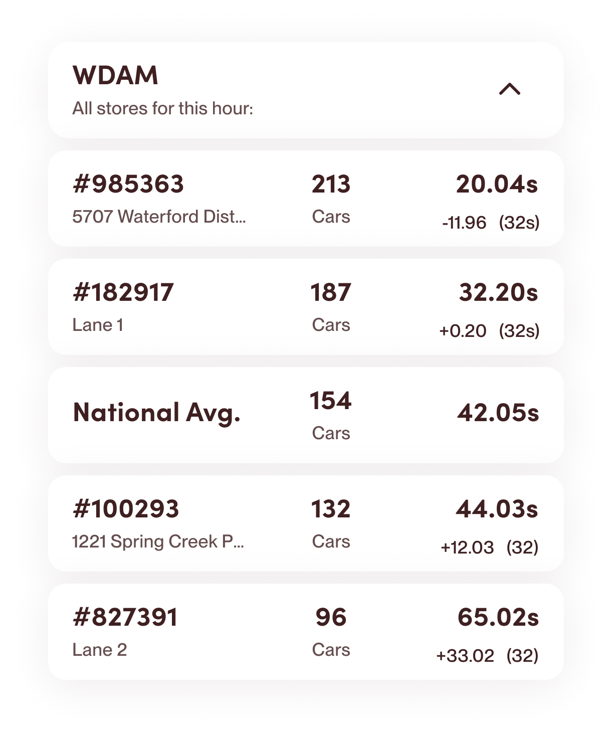 Improved drive-thru times by +0.8s YoY versus non-users by embedding speed-of-service insights and targets into restaurant management tools.